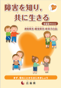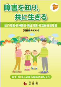 このテキストをベースにあいサポーター研修が行われます。「まず知ることからはじめましょう」というように様々な障害の基本的な知識からその障害のある方が困っている事や配慮事項などが説明されています。