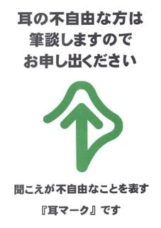このマークを提示された場合は、相手が「聞こえない」ことを理解し、コミュニケーションの方法への配慮をしてください。