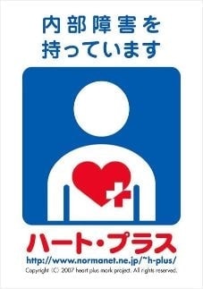 「身体内部に障害がある人」を表しています。身体内部(心臓、呼吸器、腎臓、膀胱・直腸、小腸、肝臓、免疫機能)に障害がある人は外見からはわかりにくいため,様々な誤解を受けることがあります。