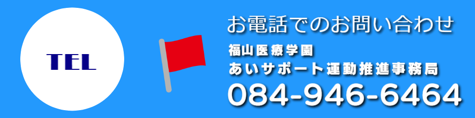 学校法人福山医療学園 広島県あいサポート運動のWEBサイトの個人情報の取り扱いに関するご意見・ご質問等がございましたら、あいサポート運動推進事務局までお問い合わせください。