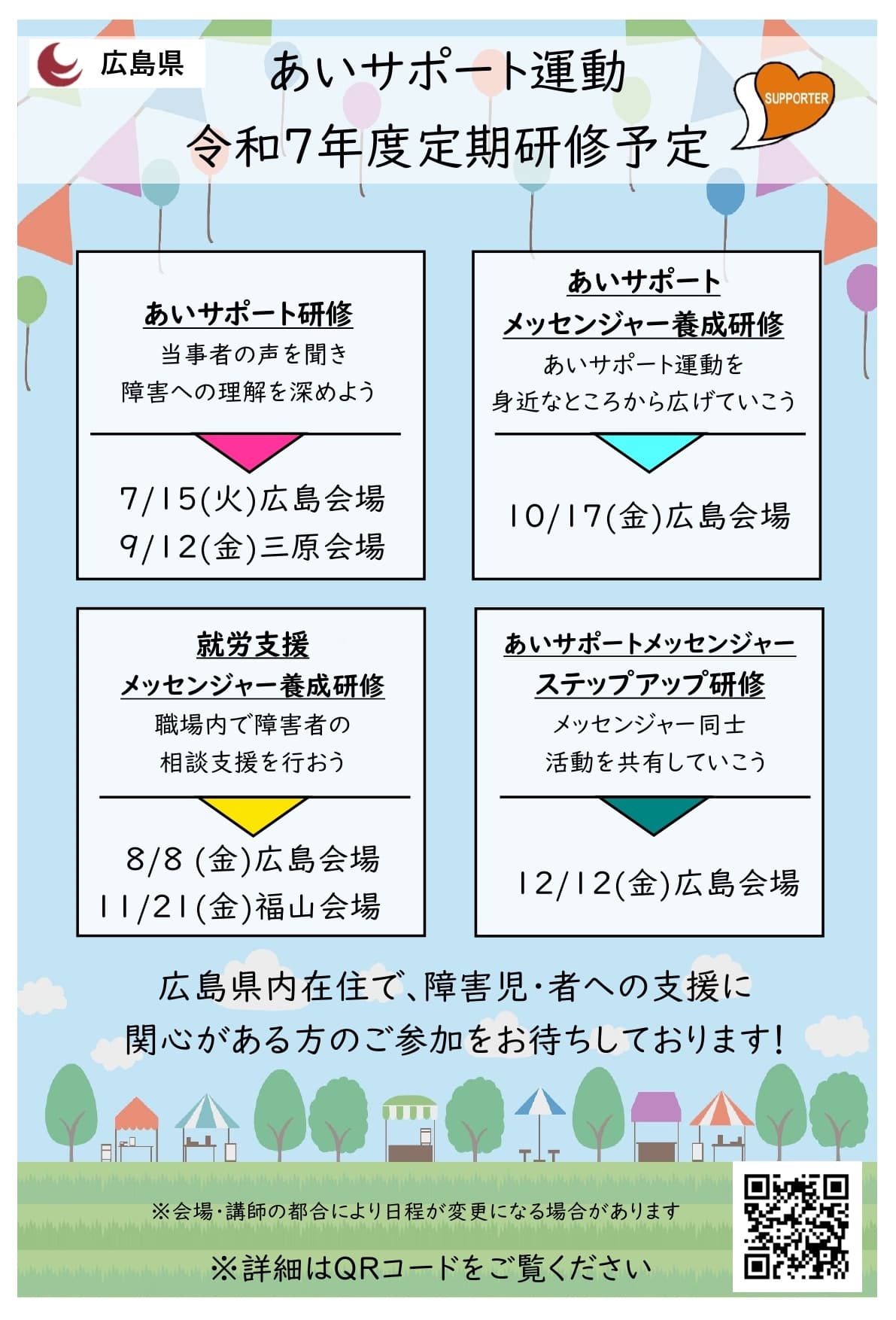4種類の研修を、年間6回開催します 広島県にあいサポート運動を広めよう!