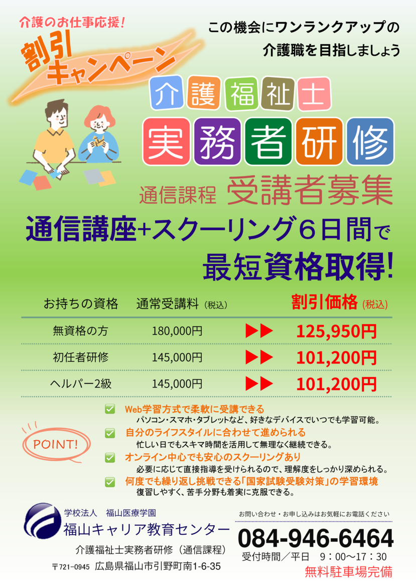 | 学校法人福山医療学園 福山キャリア教育センター TEL 084-946-6464 |