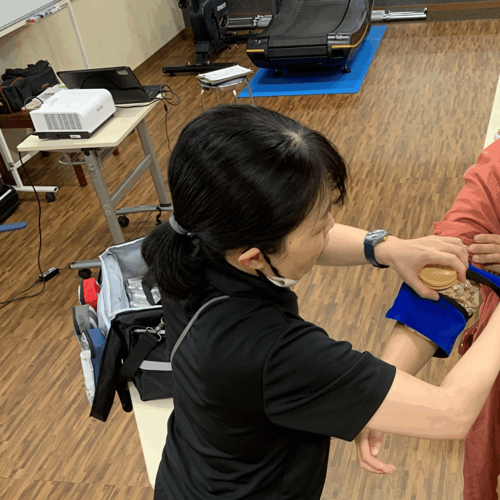 今回は『応急処置について』体験授業を行いました。トレーナーの現場では様々な外傷が起こり得るため、応急処置の知識と技術が必要となります。