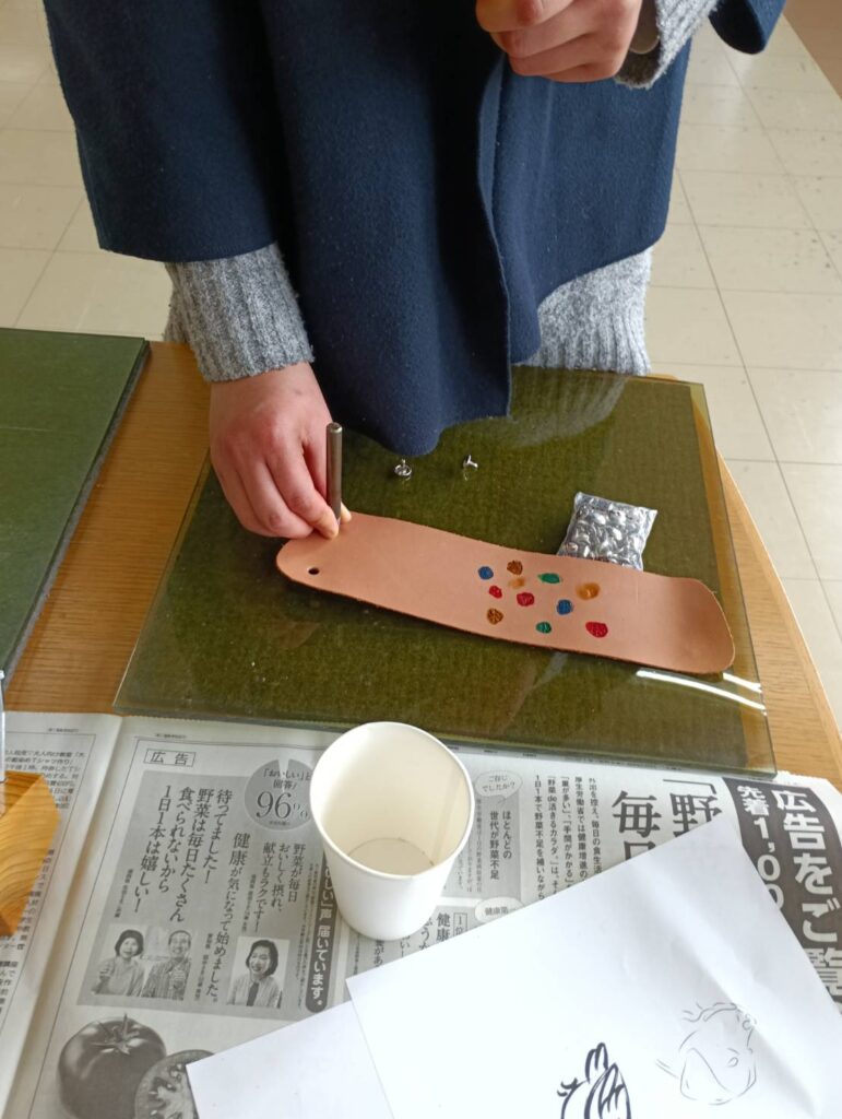そんな作業の一端である「革細工」を体験してもらいました。