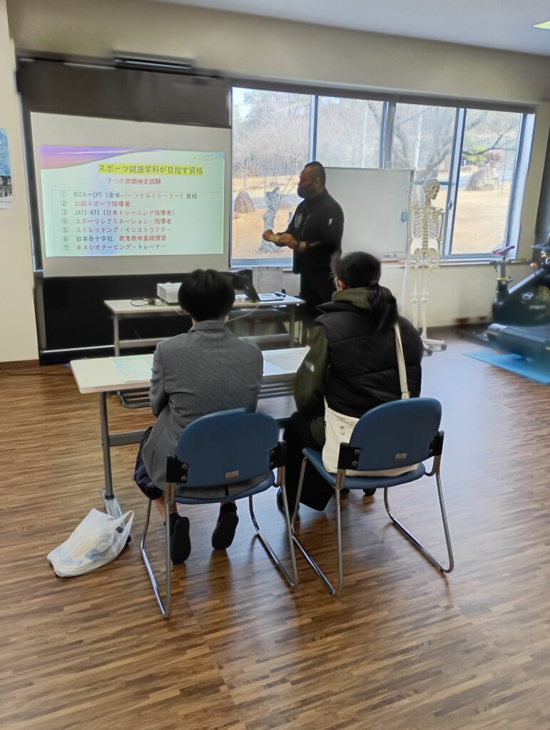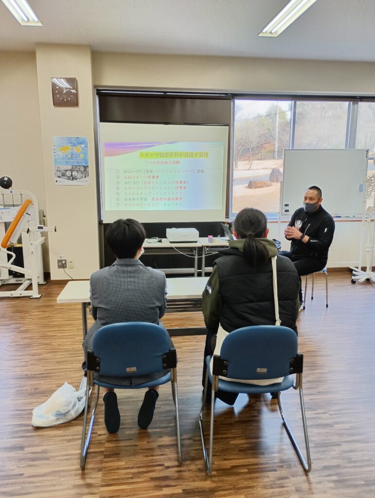 まあ、本学科で目指すトレーナーや資格の種類についても説明し、卒業後はどのようなフィールドで活躍でき